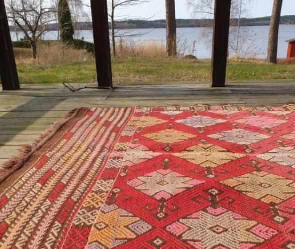 Vi vattentvättar alla våra mattor, nya som vintage innan vi tar in dem i butik!